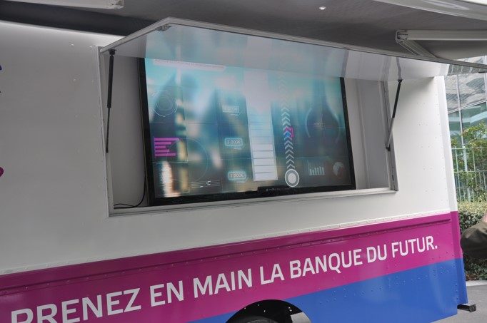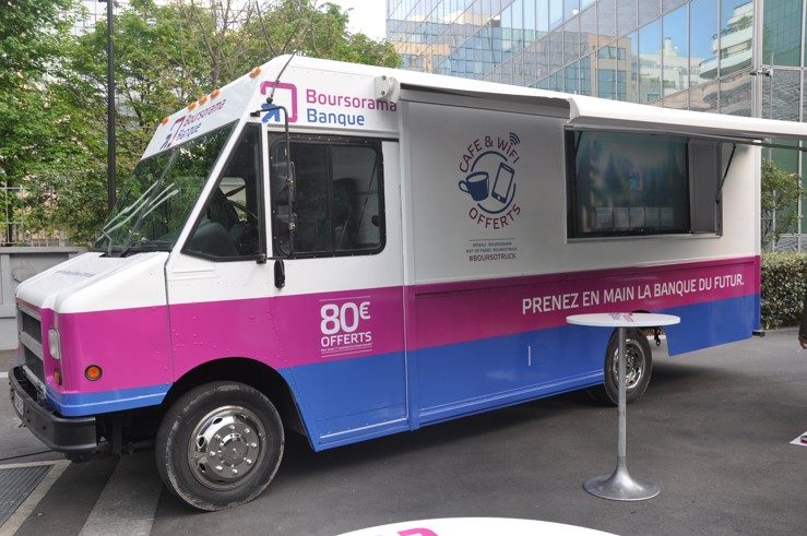 La conquête de nouveaux clients doit passer par la découverte de nouveaux services. A l’instar de grands noms des loisirs, comme Pierre et Vacances, ayant lancé le FoodTruck le plus haut du monde, Boursorama Banque entend bien faire découvrir ses services bancaires via son BoursoTruck. Le BoursoTruck n’est autre qu’un camion de démonstration, équipée de multiples écrans et tablettes, afin de permettre à tous de tester la facilité d’utilisation des services bancaires de la banque en ligne.