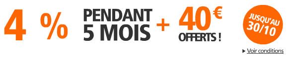 Le taux de rémunération proposé aux nouveaux clients est de 4% brut pendant 5 mois, dans la limite de 150 000 €.