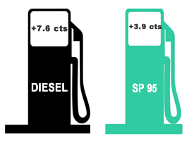 Résultat, les taxes vont augmenter de 7,6 centimes par litre sur le diesel ( une hausse de 10 % ). La progression sera moins importante pour l’essence : +3,9 centimes. Ces augmentations s’entendent hors TVA : dans les faits, les automobilistes verront ces hausses majorées de 20 %. La facture va augmenter en moyenne de 240 ou 350 euros par an pour un automobiliste selon le carburant utilisé, a calculé l’Union française des industries pétrolières (Ufip).